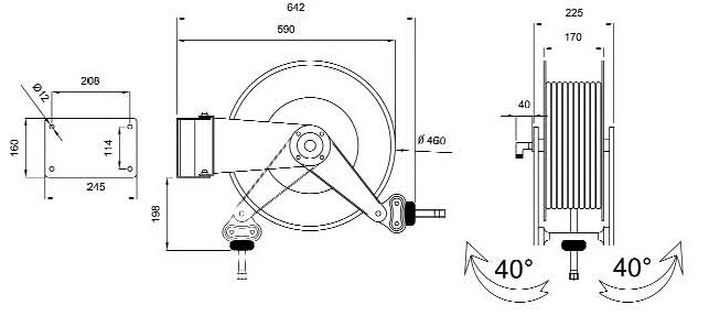 Описание: Катушка для раздачи масла/воды, открытая,1/2", длина шланга 25 метров.