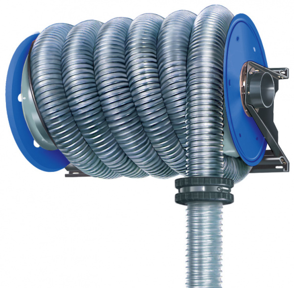 Вытяжная катушка предназначена для удаления выхлопных газов от выхлопной трубы автомобиля на стационарных рабочих местах. Катушка эксплуатируется в составе системы вытяжной вентиляции или подключается непосредственно к вытяжному вентилятору.