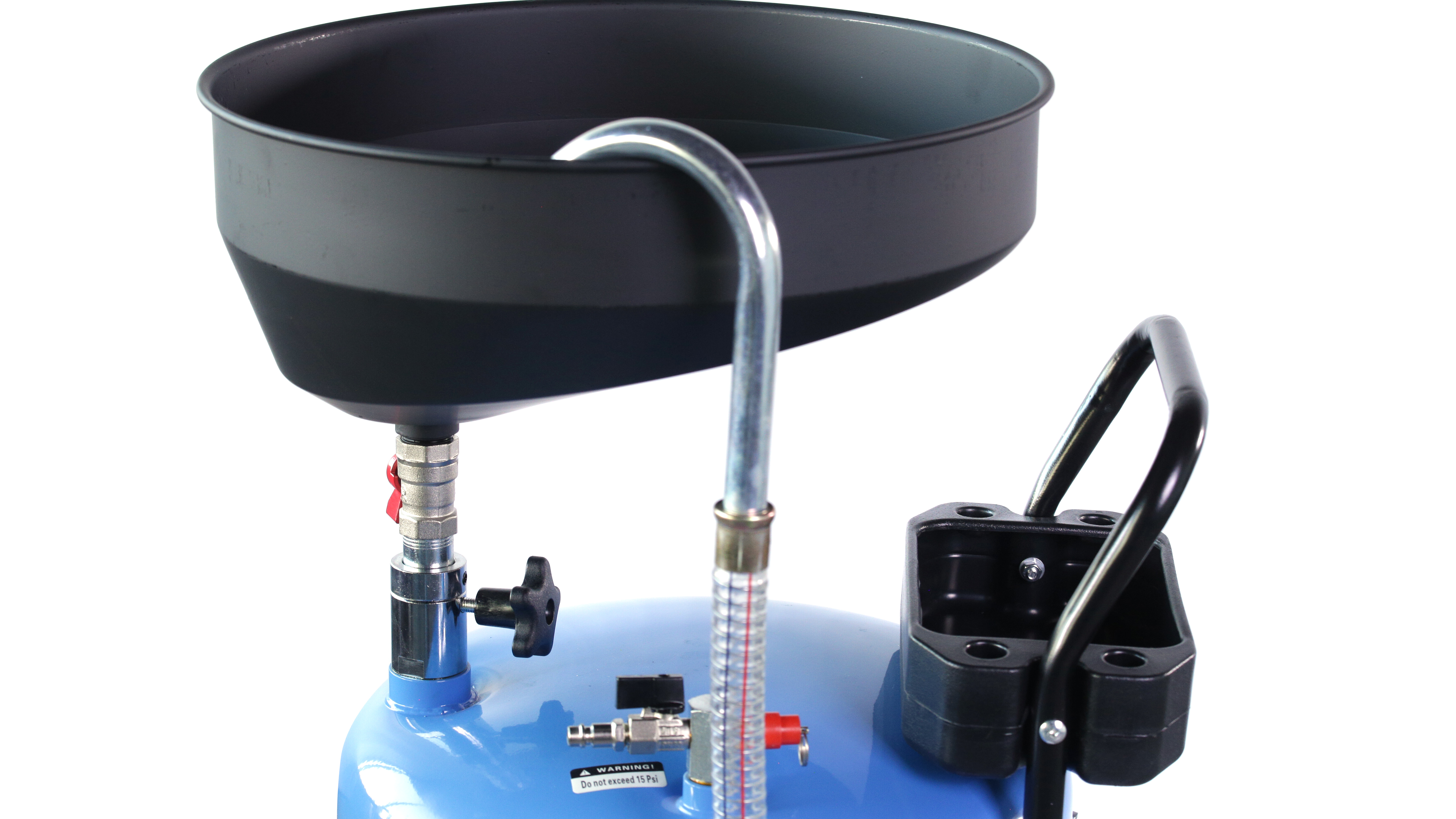 Установка PROTech, модель SOD70Pro предназначена для сбора масла, антифриза и других технических жидкостей методом слива самотеком. Объем основной емкости составляет 70 литров. Такой объем позволяет провести обслуживание большого количества автомобилей, не опустошая часто емкость. Регулируемая по высоте приемная ванна с уклоном имеет объем 10 литров. У основания приемной ванны расположен шаровый кран, перекрывающий слив жидкости в основную емкость до контроля ее состояния. Для слива жидкости из установки необходимо подключить сжатый воздух к штуцеру, расположенному в верхней части емкости. Под давлением вся жидкость выливается через гибкий шланг с жестким наконечником в емкость большего объема и затем утилизируется. Давление воздуха контролируется по манометру. Для безопасности на корпусе установлен клапан избыточного давления, который предохраняет стенки от деформации и разрушения.
