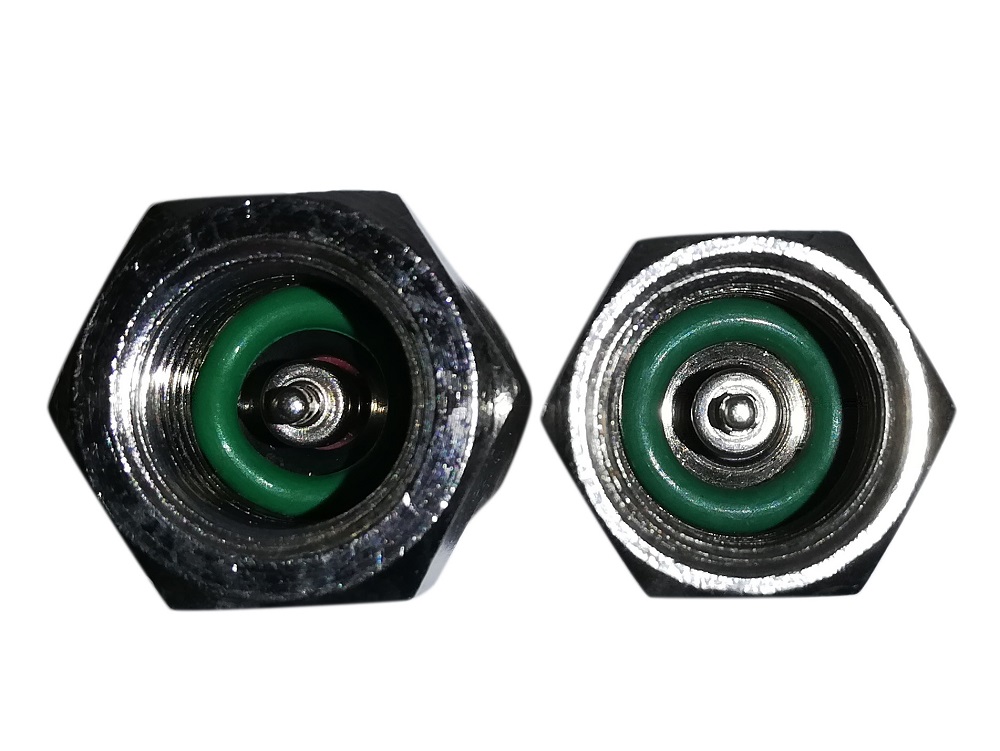 При работе с установкой для обслуживания автомобильных кондиционеров, имеющей внутреннюю ёмкость, перед началом работ необходимо заполнить эту ёмкость фреоном. Чаще всего для заправки внутреннего баллона приходится откручивать быстросъёмные соединения от шланга и прикручивать его к баллону с фреоном. Это неудобно и отнимает много времени. Ускорить эту процедуру поможет комплект адаптеров KRW-1316. Он состоит из двух адаптеров с внутренней резьбой 7/16 и ответной частью под быстросъемные адаптеры KRW-QCH и KRW-QCL. Резьбовая часть адаптеров накручивается на внешний баллон с фреоном, а на ответную часть адаптера, в зависимости от типа установки для обслуживания кондиционеров, одевается быстросъемный адаптер линии высокого или низкого давления с шлангом и производится заправка внутренней ёмкости установки.