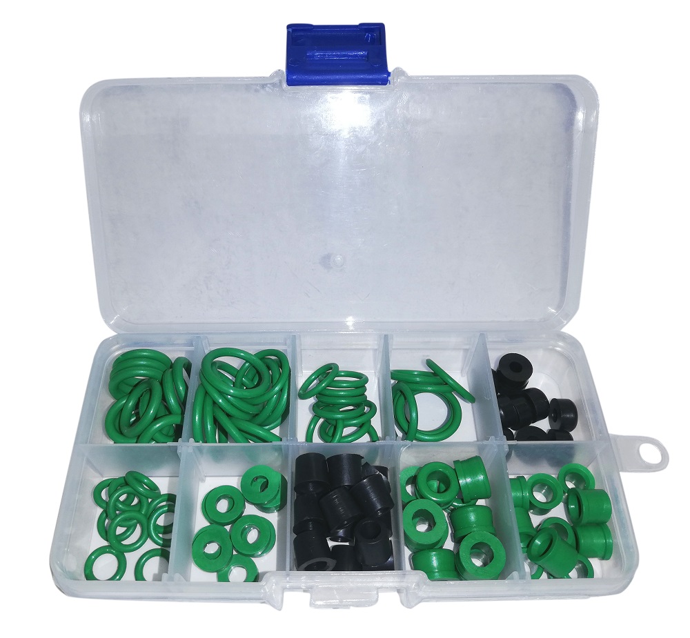 Комплект резиновых уплотнений для ремонта шлангов и быстросъемных соединений KRW-238 состоит из резиновых колец и уплотнителей различной формы и диаметра. Уплотнения выполнены из качественных материалов, стойких к воздействию масла и фреона.