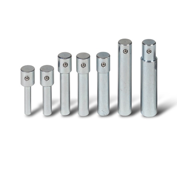 Комплект A-5600 состоит из 7 пуансонов диаметром 12, 16, 18, 20, 22, 25, 30 мм. Для фиксации пуансона в штоке гидроцилиндра, его достаточно просто вставить во внутреннюю полость штока, предварительно сняв защитную заглушку. За счет шарикового механизма пуансон надежно фиксируется и не выпадает в процессе эксплуатации. Для хранения комплекта, в конструкции прессов MEGA предусмотрена встроенная полка.