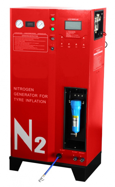 Генераторы азота марки RED Line Premium производят азот преобразованием сжатого, предварительно очищенного от воды, маста, мелких частиц и прошедшего ерез угольный фильтр воздуха под давлением. Данная система действует с помощью специальной проницаемой мембраны, то есть используя пучок особых текстильных волокон в состоянии отделять молекулы кислорода от молекул азота. На выходе данного устройства молекулярное разделение почти абсолютное и получаемая чистота может достигать 99%. Для использования на дорожных шинах считается достаточным и оптимальным давление 95%.
