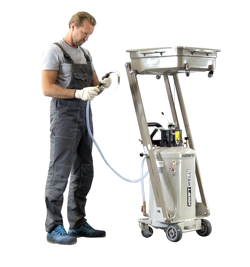 KraftWell KRW1835 Установка для слива и откачки масла/антифриза с пантографной ванной, мобильная
