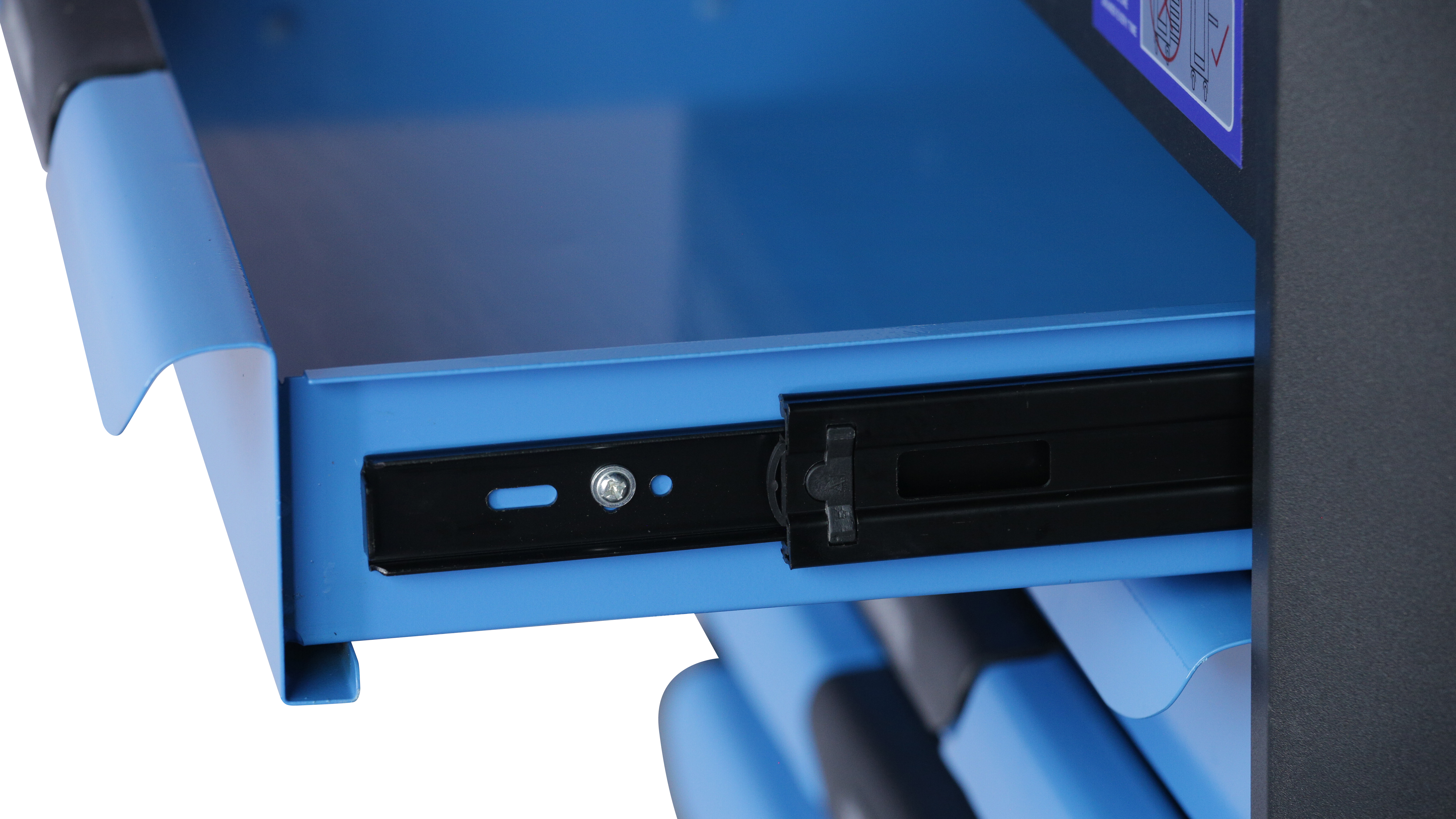Описание: Тележка инструментальная с 7 выдвижными ящиками.Цвет синий. Ящики на телескопических направляющих с фиксацией и доводчиком. В ПОДАРОК - комплект инструмента 277 предметов на 6 ложементах.