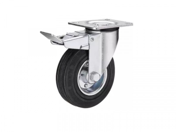 Колесо поворотное усиленное резина SRCB 42 100 мм с тормозом
