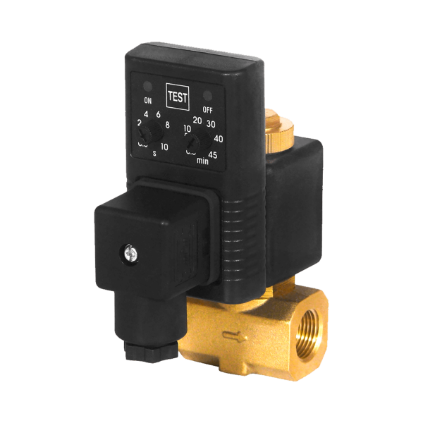 Конденсатоотводчик предназначен для автоматического удаления конденсата из элементов пневмосистем, где возможно его периодическое выделение и скопление. Конденсатоотводчик состоит из электромагнитного клапана и таймера.Дренаж конденсата происходит автоматически, в соответствии с предварительно установленным пользователем интервалом.