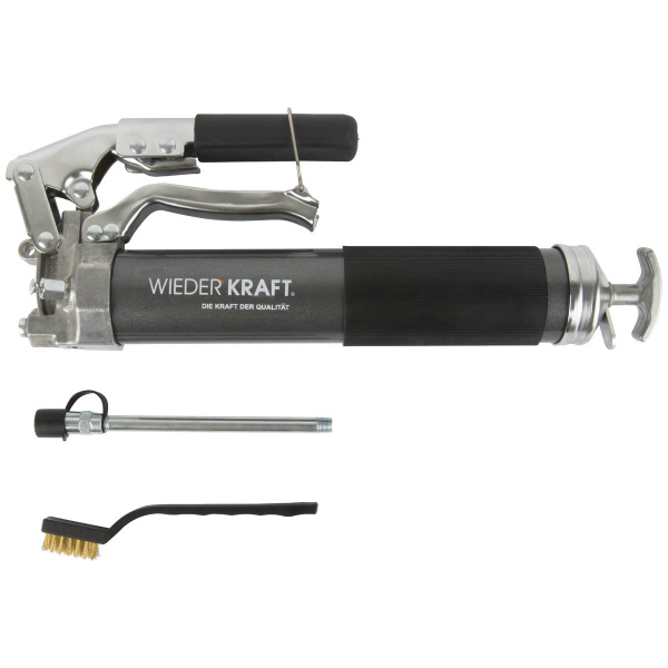 Шприц для смазки WiederKraft рычажно-плунжерный, 400 мл WDK-65159 необходим для нагнетания смазки при проведении профилактических, ремонтных и обслуживающих работ. Шприц обладает рычажным механизмом с рукояткой, которая не скользит в руке во время работы.Позволяет работать с картриджем 400 гр.