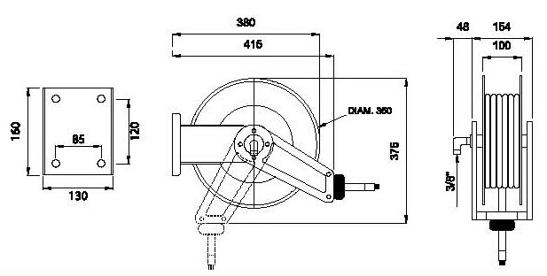 Описание: Катушка для раздачи масла/воды, открытая,1/2", длина шланга 7,5 метров.