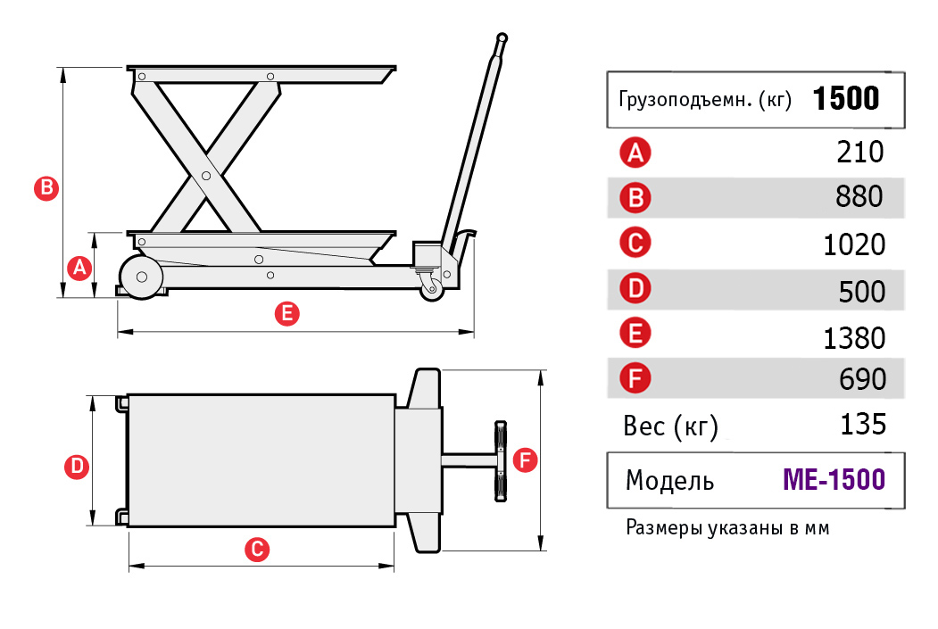MEGA ME-1500 Платформа подъемная передвижная, г/п 1500 кг.