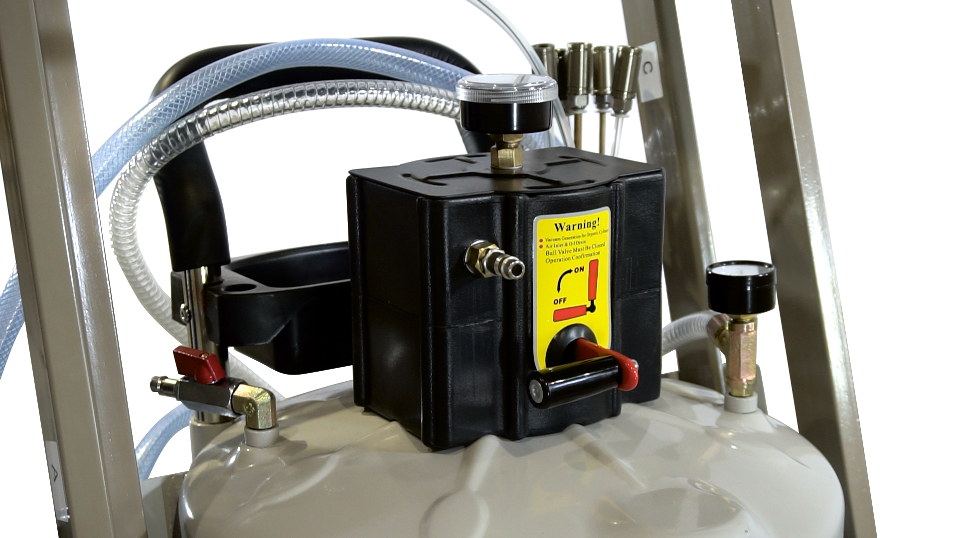 Система безопасного опустошения емкости при помощи сжатого воздуха с клапаном избыточного давления и манометром