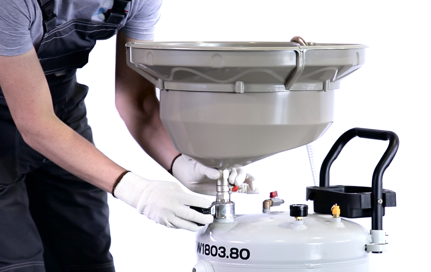 KraftWell KRW1803.80 Установка для слива масла/антифриза с круглой подъемной ванной, мобильная