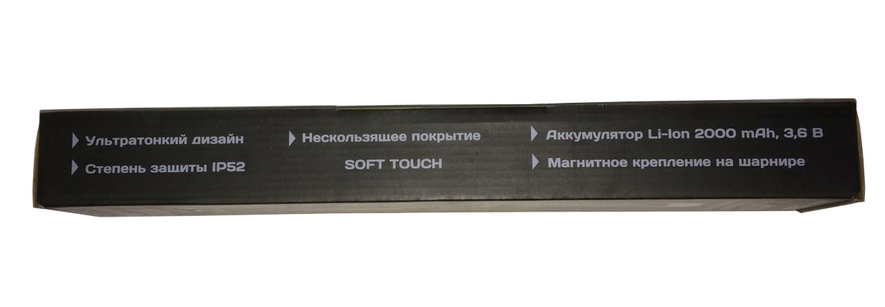 Описание: Светодиодная аккумуляторная лампа мощностью 4 Вт. Ультратонкий дизайн корпуса. 30 ярких светодиодов, световой поток 600 люмен. Напряжение аккумулятора 3,6 В, ток 2000mAh. 4 часа непрерывной работы. Зарядка от USB. Защита IP52. Магнитное крепление на шарнире.