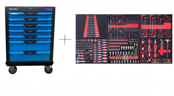 KraftWell KRW-TTB+SET277 Тележка с 7 ящиками+ПОДАРОК инструмент 277 предметов