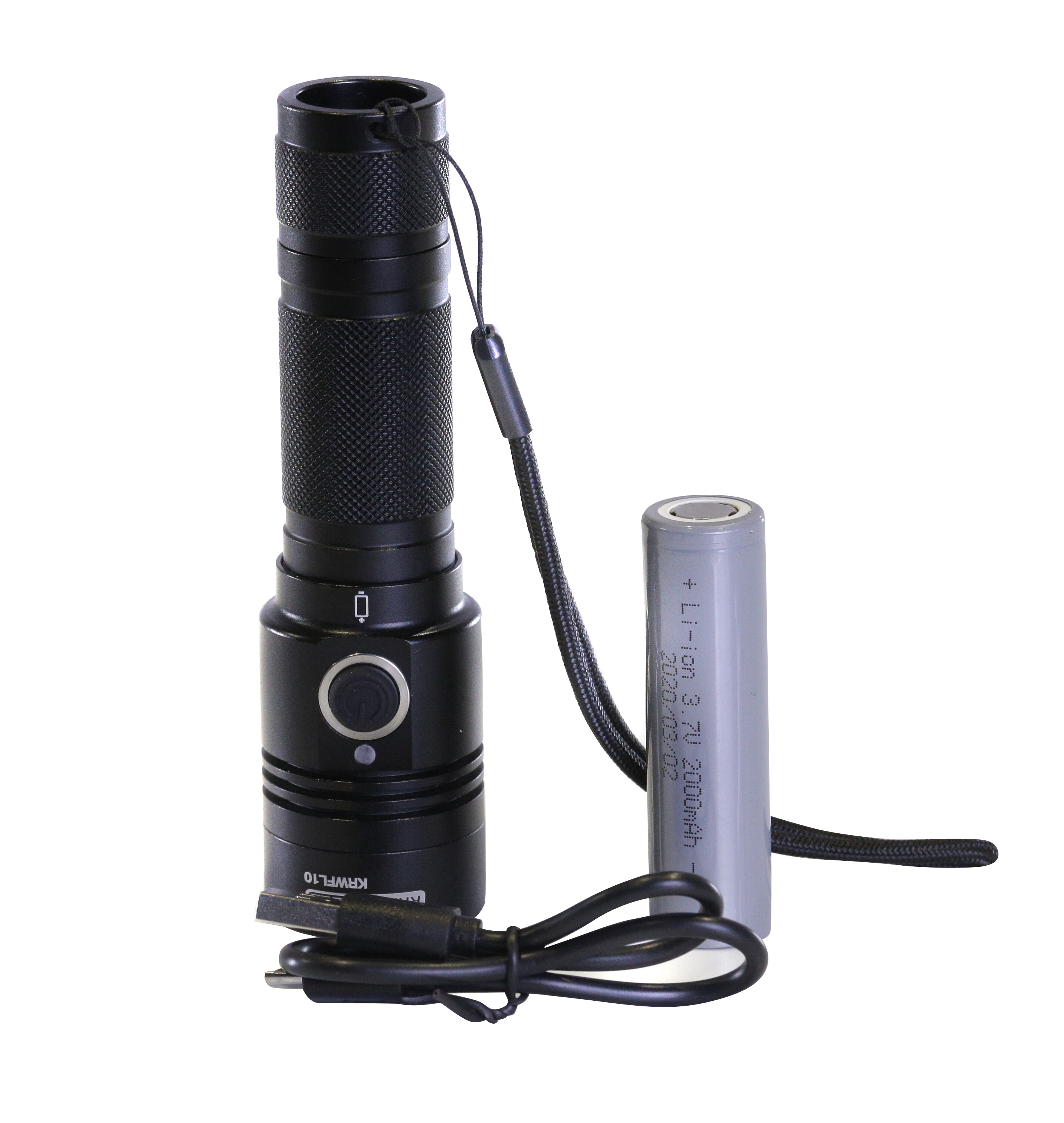 Фонарь питается от аккумуляторной батареи напряжением 3,7 В и током 2000 mAh, обеспечивающей время непрерывной работы до 6 часов. В комплекте с фонарем поставляется кабель для зарядки от USB порта компьютера, ноутбука или внешнего аккумулятора для телефона (Power Bank). Корпус фонаря изготовлен из ударопрочного алюминия и имеет степень защиты от пыли и влаги IP65. Ремешок, входящий в комплект, надежно фиксирует фонарь на запястье руки.