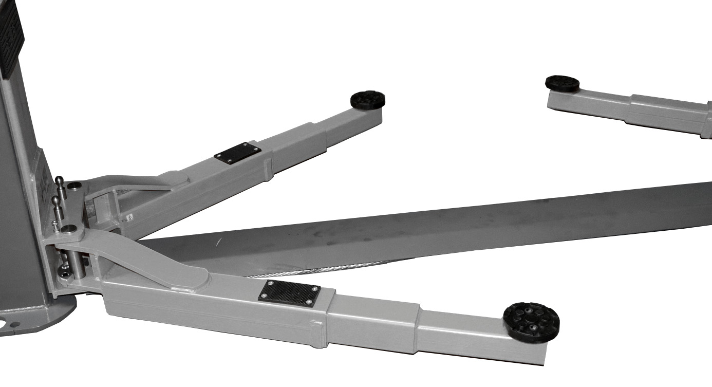 Двухстоечный электрогидравлический подъемник с верхней синхронизацией KRAFTWELL KRW4ELH оснащается каретками с лапами, расположенными внутри каретки. Зубчатые сегменты, предотвращающие поворот лап в поднятом состоянии, так же находятся внутри. Короткие лапы имеют длину 740-1140 мм, длинные 740-1180 мм. Все лапы у данного подъемника двухсекционные.