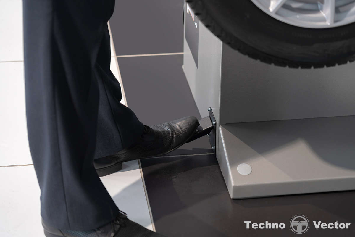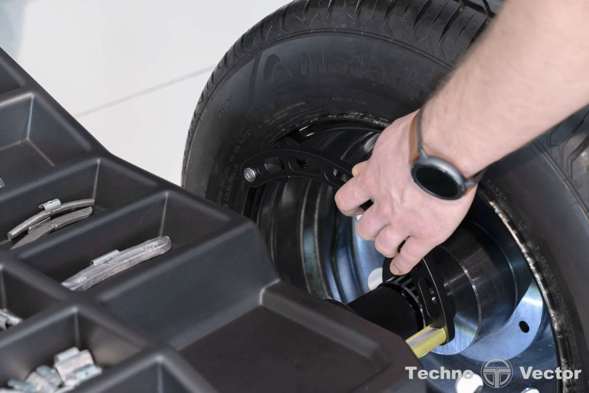 - Электромеханический тормоз для точной фиксации колеса в месте установки корректирующей массы