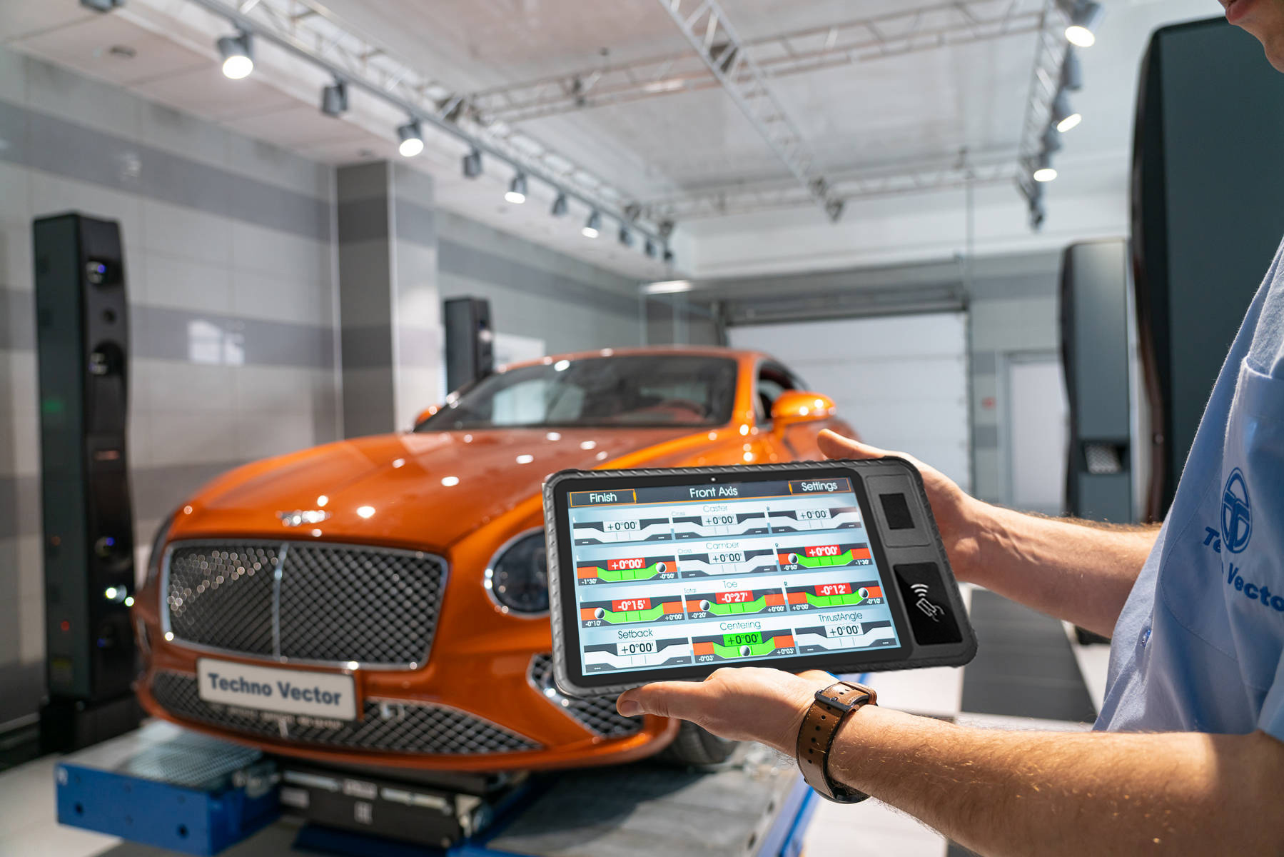 - Лазерный 3D сканер позволяет производить измерения параметров колес в полностью автоматическом режиме.