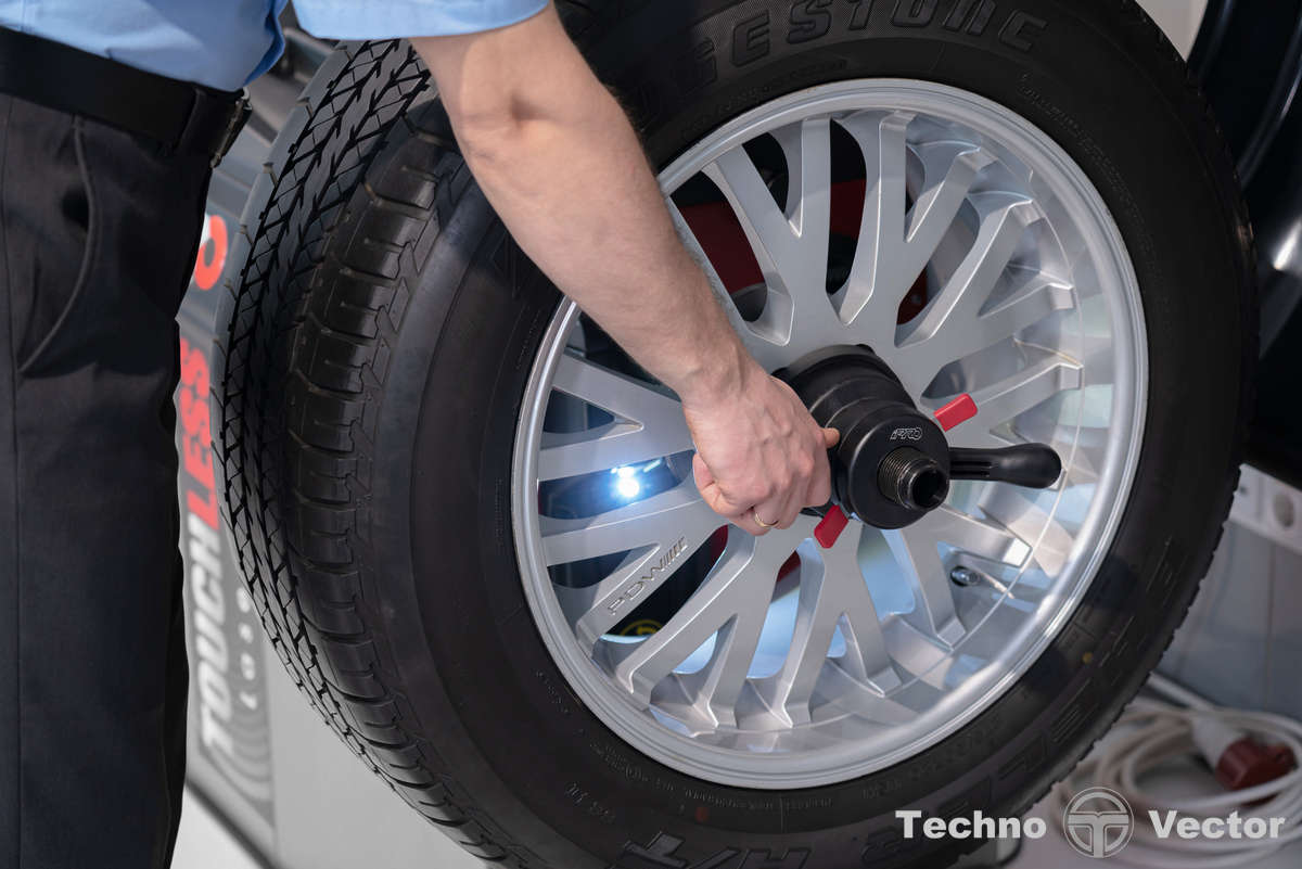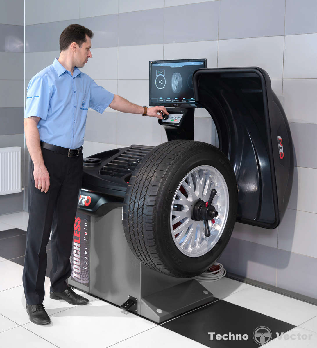 - Электромеханический тормоз для точной фиксации колеса в месте установки корректирующей массы