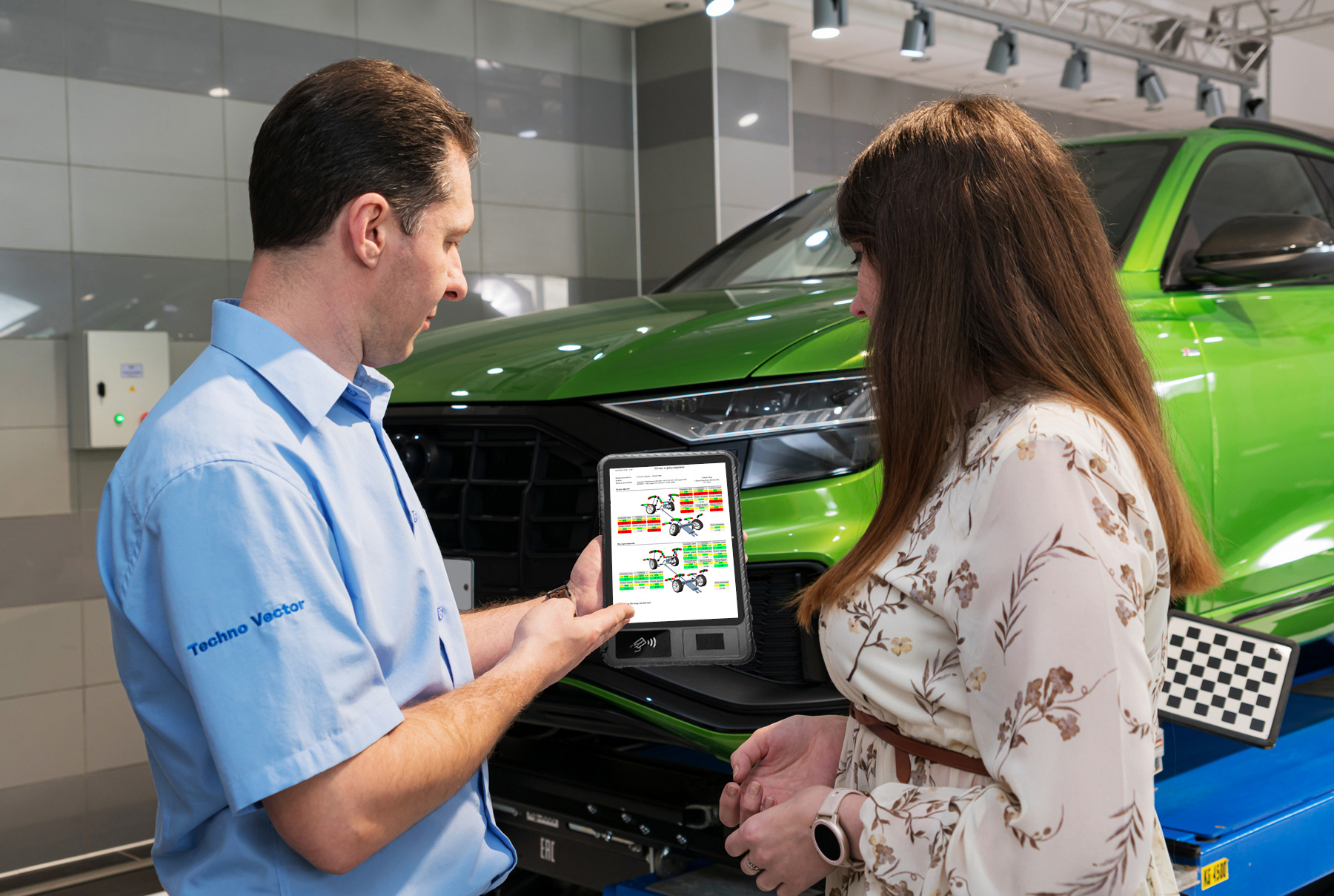 - Лазерный 3D сканер позволяет производить измерения параметров колес в полностью автоматическом режиме.