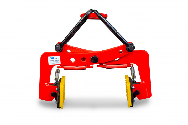 Захват для блоков (или бордюров, брикетов) предназначен для подъема брикетов из бетона, дерева, пластмассы, металлической стружки. Зев (створ) захвата позволяет удерживать одним захватом грузы различных габаритов. Захват снабжен фиксатором для удержания в открытом положении и шипами на лапах для более надежного удержания груза.<br />Технические характеристики:
