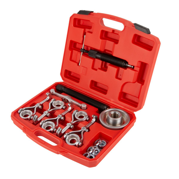 Набор WDK-214112A для снятия хабов (муфт) и барабанов диаметром до 250 мм. Поставляется с гидравлическим цилиндром 10 т. Этим инструментом можно снять ступичную гайку диаметром от 3 до 250 мм. Каждый инструмент изготовлен из высокопрочной стали, обеспечивающей надежность и долговечность набора.Технические характеристики: