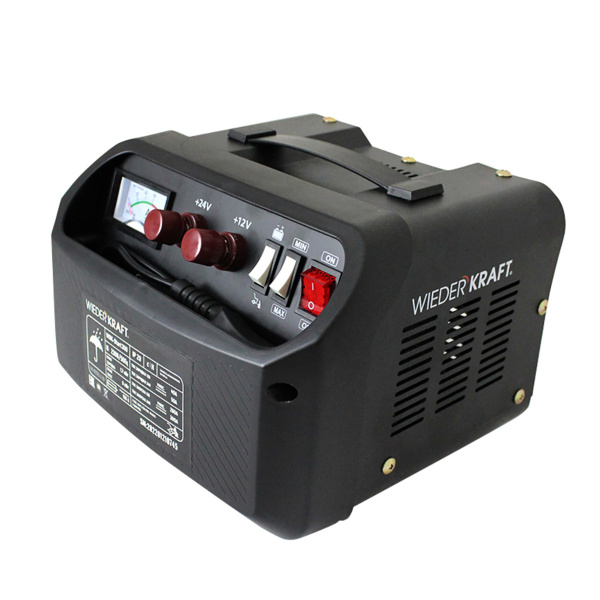 Пуско-зарядное устройство 12/24V 300А WDK-Start300 - удобный прибор, позволяющий быстро зарядить аккумулятор или запустить технику. Благодаря паянным контактам и медному трансформатору, пуско-зарядное устройство отличается высокой надежностью. Мощность тока достаточна для работы с легковыми автомобилями, мотоциклами и лодками.Устройство имеет возможность зарядки и запуска аккумуляторов 12/24 В. Максимальный ток зарядки: 12В - 40 А, 24В - 50 А. Максимальный ток запуска: 12В - 260А, 24В - 300А.