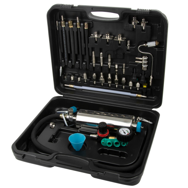 Набор позволяет производить промывку дроссельного узла и впускного тракта БЕЗ снятия форсунок. Подходит как для бензиновых, так и дизельных двигателей. Подключается к рампе любых автомобилей и позволяет использовать любые промывочные жидкости. Переходники в комплекте – 35 шт.Набор для промывки форсунок очищает детали цилиндро-поршневой группы, выравнивает и повышает компрессию в цилиндрах, снижает коксовые отложения в рабочей части форсунок, очищает клапаны, восстанавливает качество распыления.