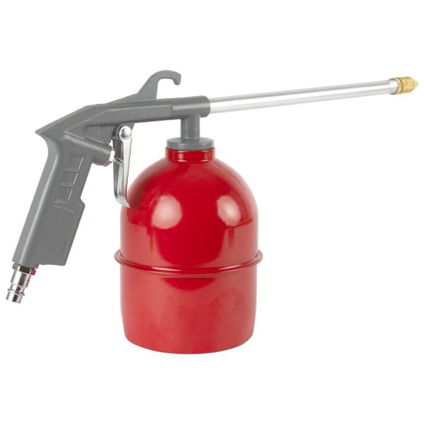 Моечный (мовильный) пистолет предназначен для удаления загрязнений с различных поверхностей и обработки их антикоррозийными средствами. Он применяется для распыления моющих, антикоррозионных и других вязких составов под высоким давлением. Регулируемое сопло позволяет изменять ширину и интенсивность струи от широкого распыления до узкой мощной струи. Корпус изготовлен из прочного металла, обеспечивающего надежную защиту от повреждений. Пистолет WiederKraft обладает возможностью продолжительной работы без перерывов. Он устойчив к механическим повреждениям, а наличие длинного узкого сопла позволяет использовать инструмент в труднодоступных местах. Давление составляет 3-5 бар, емкость бачка - 850 мл. , тип соединения - евро 1/4F(быстроразъемное).